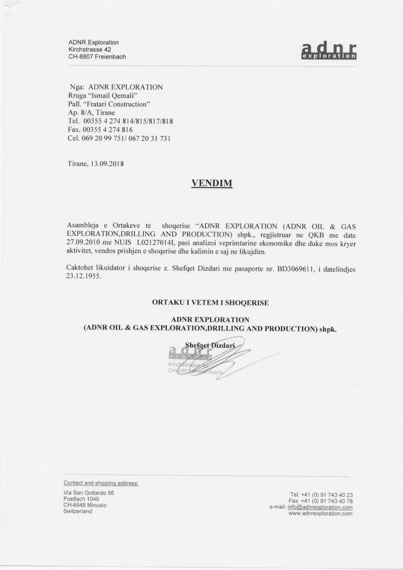 | Emërtime të tjera Tregtare: | ADNR EXPLORATION (ADNR OIL & GAS EXPLORATION,DRILLING AND PRODUCTION) |