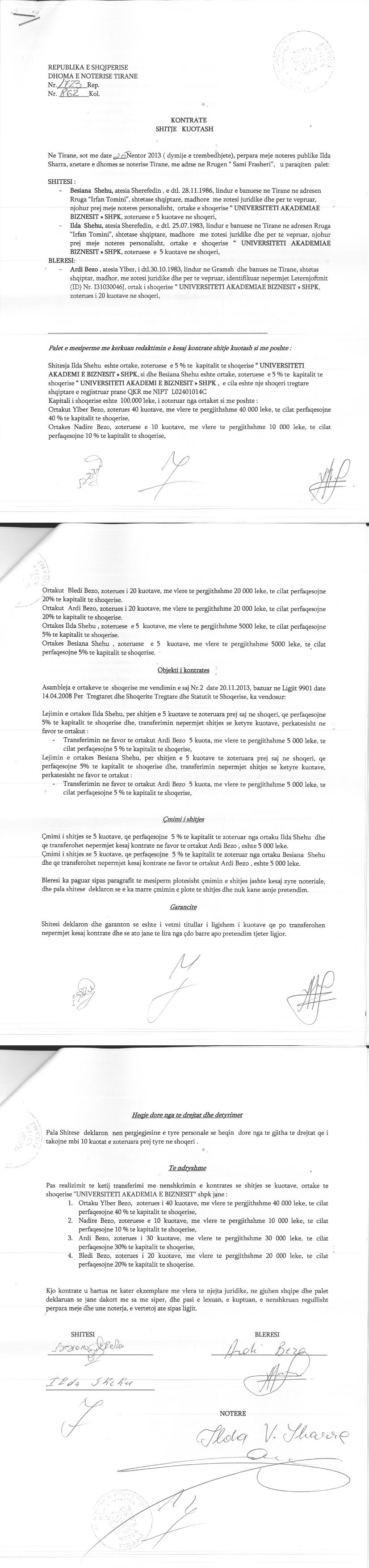→ Ekstrakti Historik i Regjistrit Tregtar date 22.06.2022 → Statuti i Shoqerise → Kontrate e Shitjes se Kuotave date 12.01.2012 → Kontrate e Shitjes se Kuotave date 20.09.2012 → Kontrate e Shitjes se Kuotave date 20.11.2013 → Vendim per zmadhimin e kapitalit date 12.12.2018 |