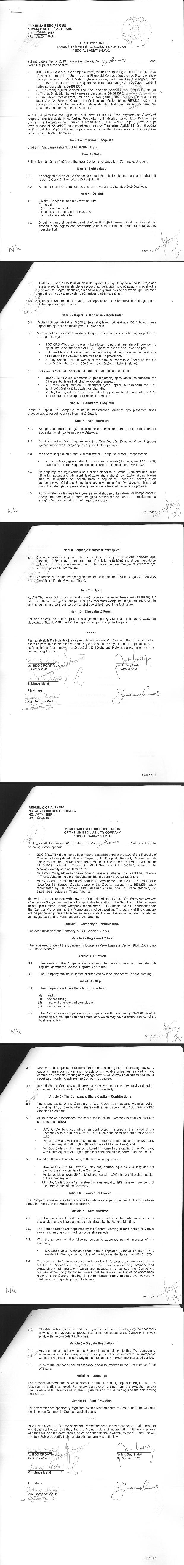 | Origjina e Kapitalit: | Shqiperi; Kroaci; Izrael |