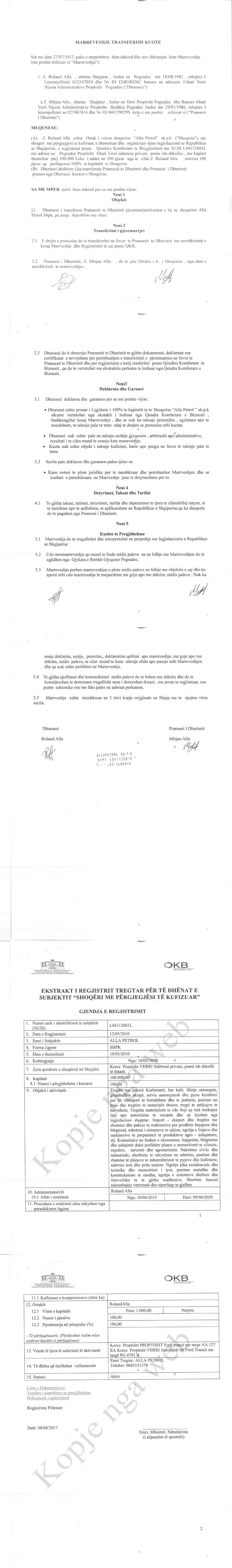 → Marreveshje e Transferimit te Kuotave date 27.07.2017 → Pasqyrat Financiare viti 2010 → Pasqyrat Financiare viti 2013 → Pasqyra e Te ardhurave dhe Shpenzimeve viti 2015 → Pasqyrat Financiare viti 2016 → Pasqyrat Financiare viti 2017 → Pasqyrat Financiare viti 2018 → Pasqyra e Te ardhurave dhe Shpenzimeve viti 2019 → Pasqyra e Te ardhurave dhe Shpenzimeve viti 2020 |