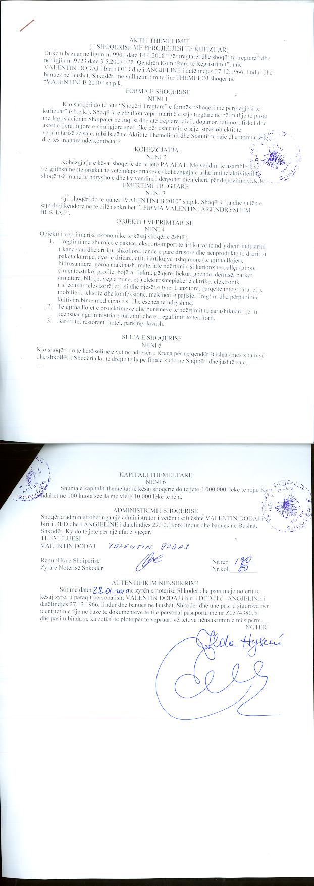 → Ekstrakt Historik i Regjistrit Tregtar date 21.02.2023 → Akt themelimi i Shoqerise → Vendim i Ortakut te Vetem, Zmadhim Kapitali date 06.06.2013 → Vendim i Ortakut te Vetem, Zmadhim Kapitali date 04.07.2022 |