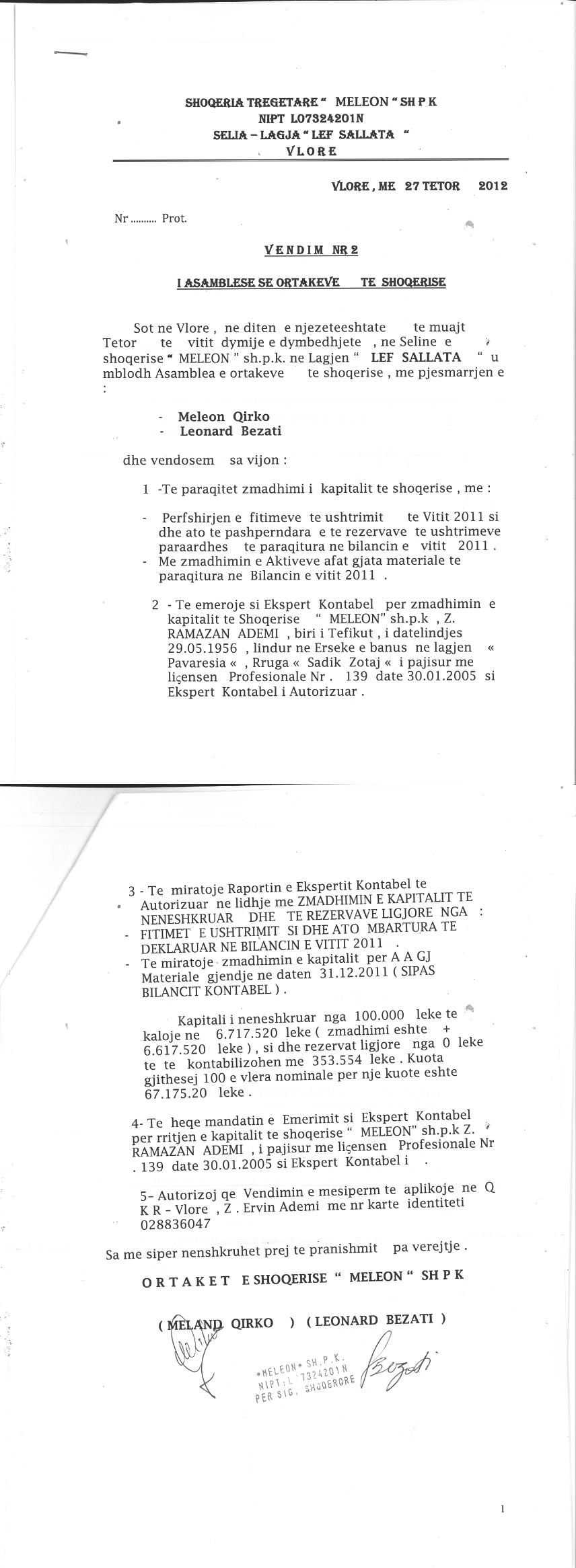→ Ekstrakt historik i regjistrit tregtar 21.11.2019 → Akti i themelimit → Vendimi i asamblese se ortakeve per zmadhimin e kapitalit 27.10.2012 |