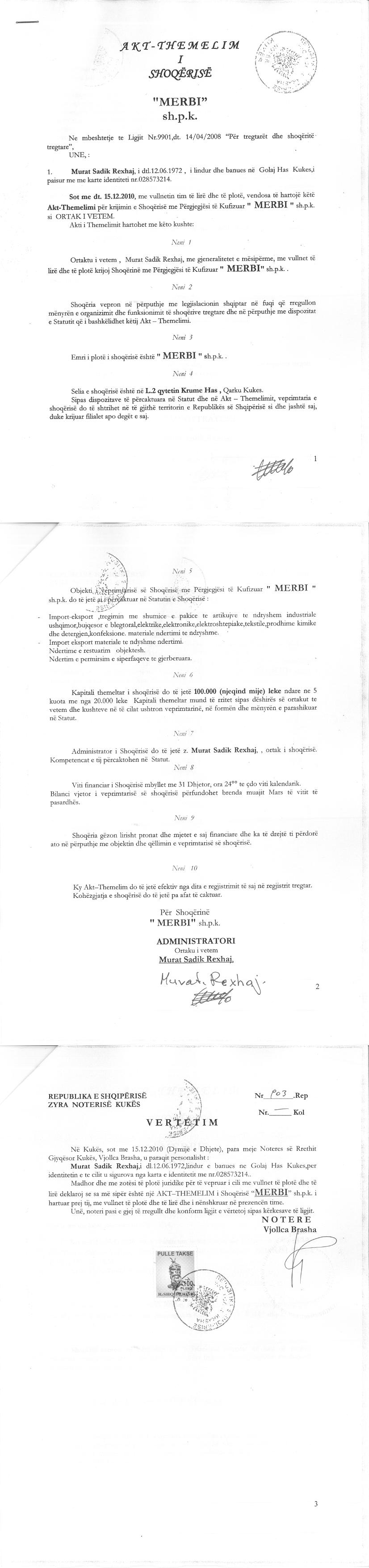 → Ekstrakti Historik i Regjistrit Tregtar date 18.12.2021 → Akti i themelimit te Shoqerise |