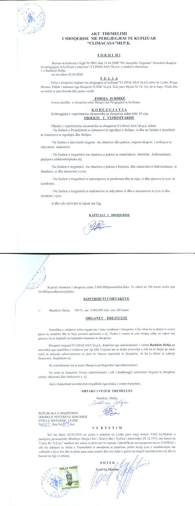 → Ekstrakt historik i regjistrit tregtar 21.10.2021 → Akti i themelimit → Vendim i ortakut te vetem per rritjen e kapitalit 29.06.2012 → Vendimi i asamblese per zmadhimin e kapitalit 03.12.2020 → Vendim i asamblese se pergjithshme, per zmadhimin e kapitalit 12.06.2017 → Vendim i ortakut te vetem per zmadhimin e kapitalit 26.05.2016 → Vendimi i asamblese se shoqerise per zmadhimin e kapitalit date 17.09.2021 → Ekstrakt Historik i Regjistrit Tregtar date 25.09.2024 |