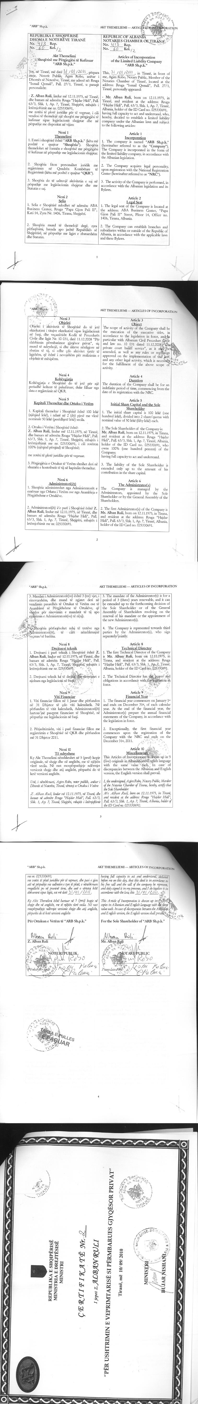 → Ekstrakti Historik i Regjistrit Tregtar date 12.01.2023 → Akt themelimi i Shoqerise |