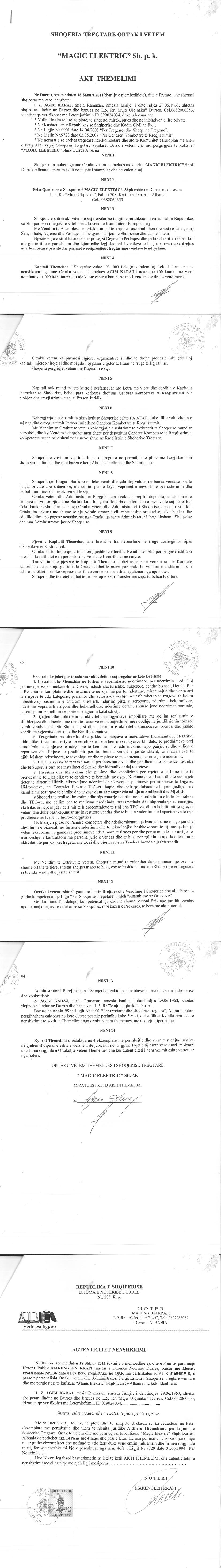 → Ekstrakt historik i regjistrit tregtar 02.08.2021 → Akti i themelimit → Ekstrakti Historik i Regjistrit Tregtar date 06.05.2023 → Ekstrakt Historik i Regjistrit Tregtar date 11.08.2023 |