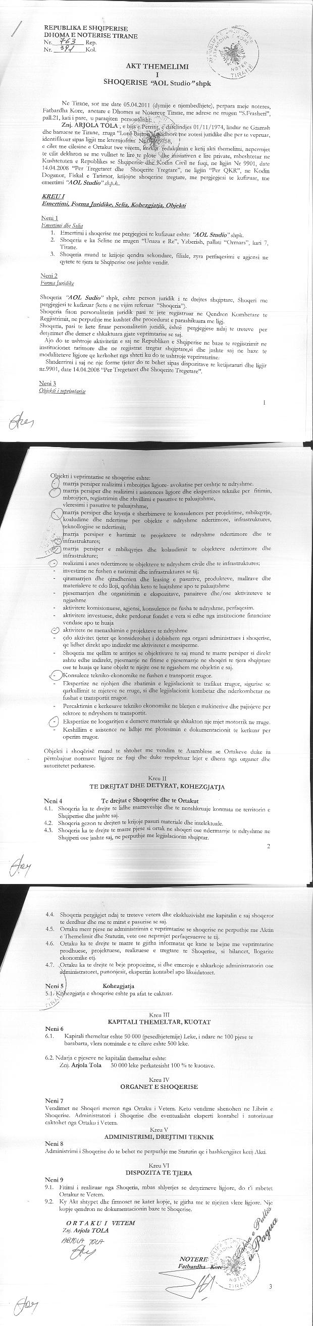 → Ekstrakti Historik i Regjistrit Tregtar date 02.02.2023 → Akt themelimi i Shoqerise |