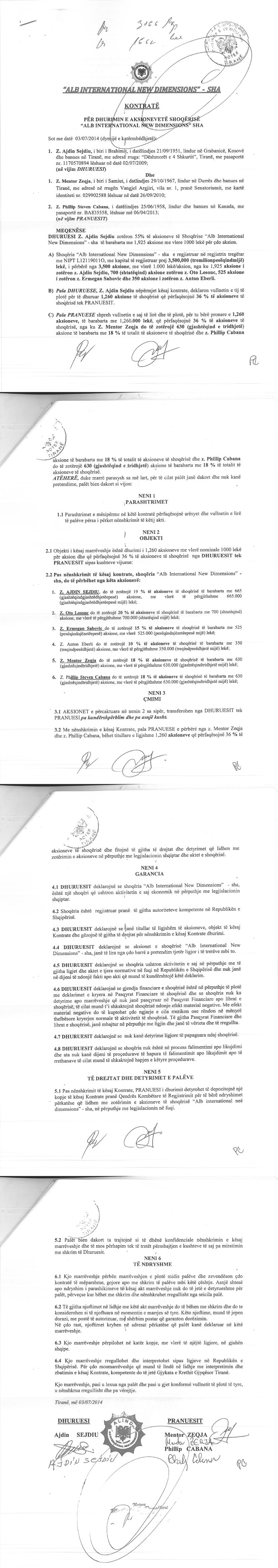 → Ekstrakti Historik i Regjistrit Tregtar date 25.01.2023 → Statuti i Shoqerise → Kontrate Dhurimi Aksionesh date 24.11.2011 → Kontrate Dhurimi Aksionesh date 18.07.2012 → Vendim i Asamblese se Aksionereve, Zmadhim Kapitali date 29.08.2012 → Kontrate Dhurimi Aksionesh date 03.07.2014 → Kontrate Dhurimi Aksionesh date 14.10.2014 → Urdher per Venie Sekuestro date 04.10.2017 → Urdher per Heqje Sekuestro date 24.01.2018 → Urdher per Venie Sekuestro date 27.03.2018 → Ekstrakti Historik i Regjistrit te Pronareve Perfitues date 25.01.2023 → Kontrate Dhurimi Aksionesh date 23.05.2012 → Lista QRA-se date 22.09.2015 |