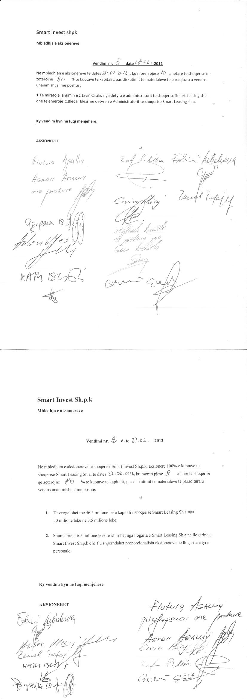 Vendim i Asamblesë së Aksionarëve për Zvogëlimin e Kapitalit datë 27.02.2012