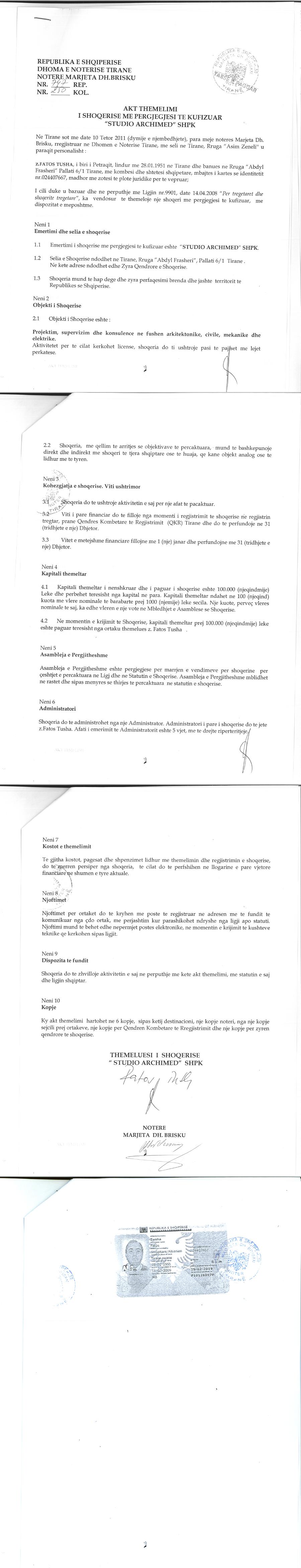 → Ekstrakt historik i regjistrit tregtar 24.12.2021 → Akti i themelimit → Vendimi per pezullimin e aktivitetit 21.10.2011 → Vendimi per aktivizimin e shoqerise 17.11.2011 → Ekstrakti Historik i Regjistrit Tregtar date 28.08.2024 |