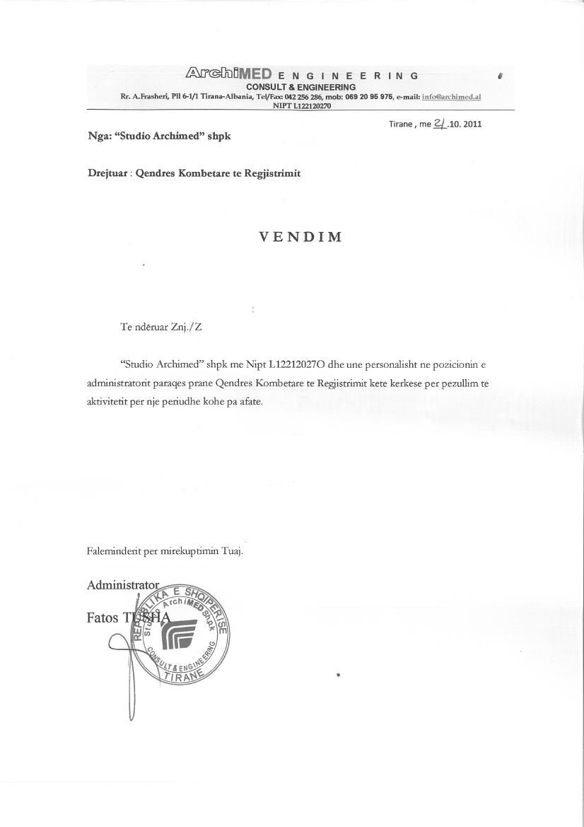 | Emërtime të tjera Tregtare: | STUDIO ARCHIMED |