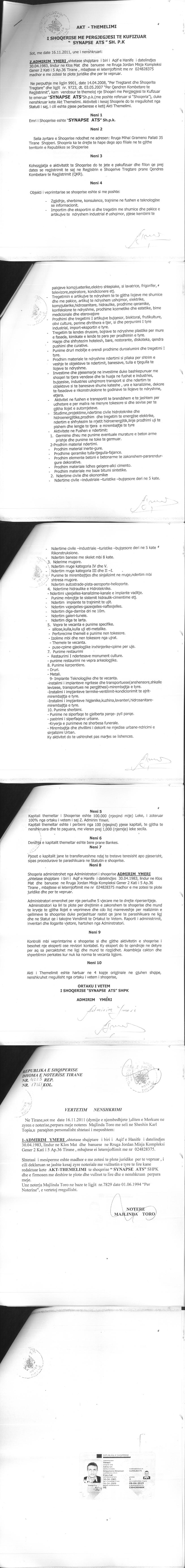 → Ekstrakt historik i regjistrit tregtar date 27.11.2021 → Akti i themelimit → Kontrate shitje kuotash date 11.02.2014 → Kontrate shit-blerje kuotash me kusht date 29.05.2018 |