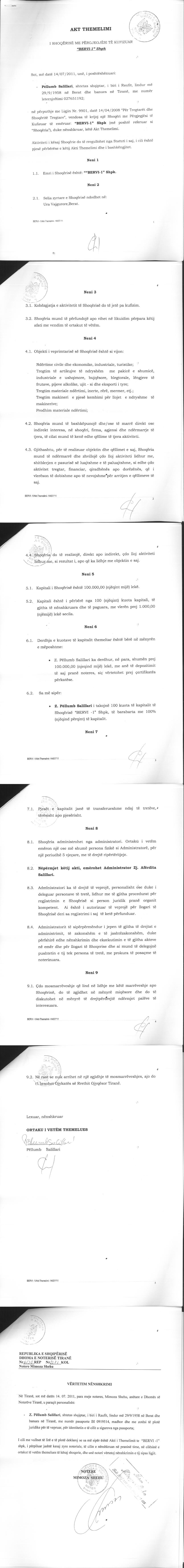 → Ekstrakti Historik i Regjistrit Tregtar date 02.02.2023 → Akt themelimi i Shoqerise → Kontrate Shitje Kuotash date 10.10.2011 |