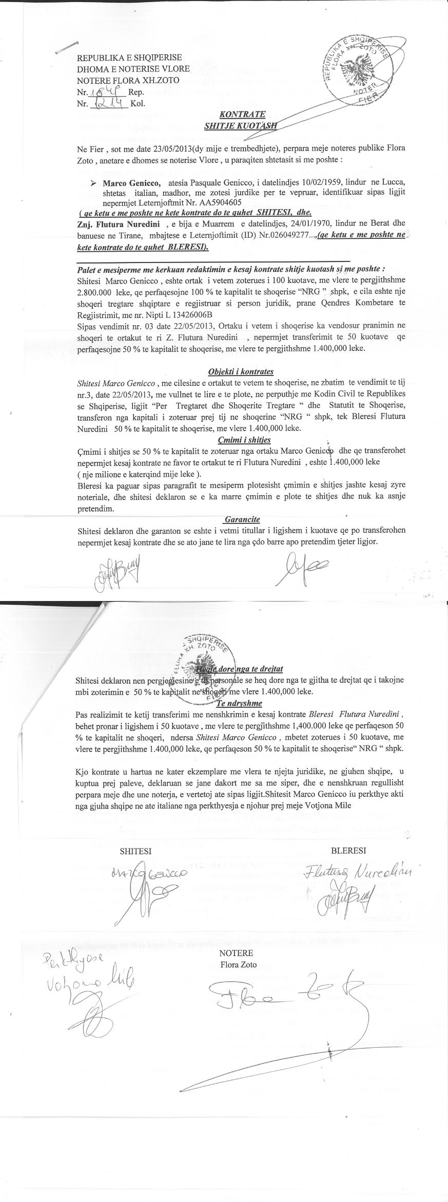 → Ekstrakt historik i regjistrit tregtar date 14.09.2021 → Akti i themelimit → Kontrate shitje kuotash date 23.05.2013 → Ekstrakt Historik i Regjistrit Tregtar date 08.08.2024 |