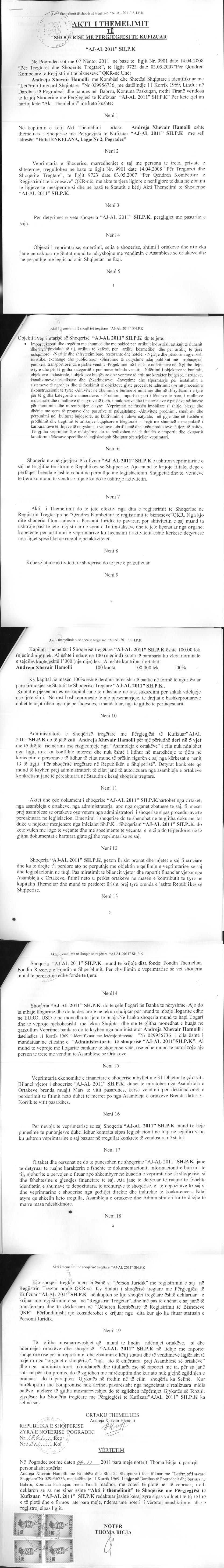 → Ekstrakti Historik i Regjistrit Tregtar date 06.11.2021 → Akti i themelimit te Shoqerise |