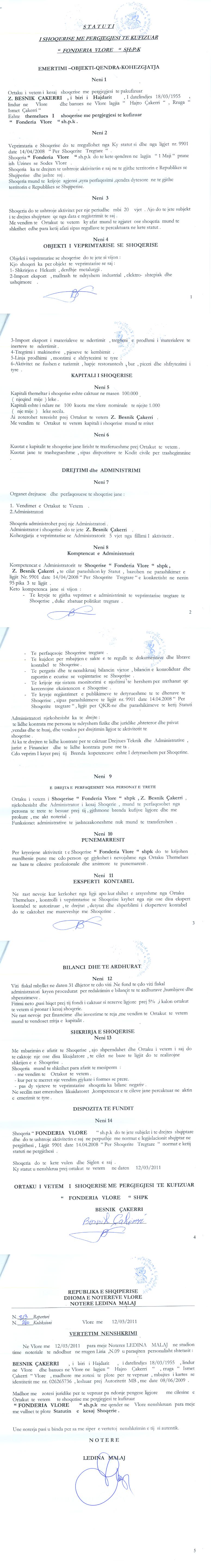 | Emërtime të tjera Tregtare: | FONDERIA VLORE |