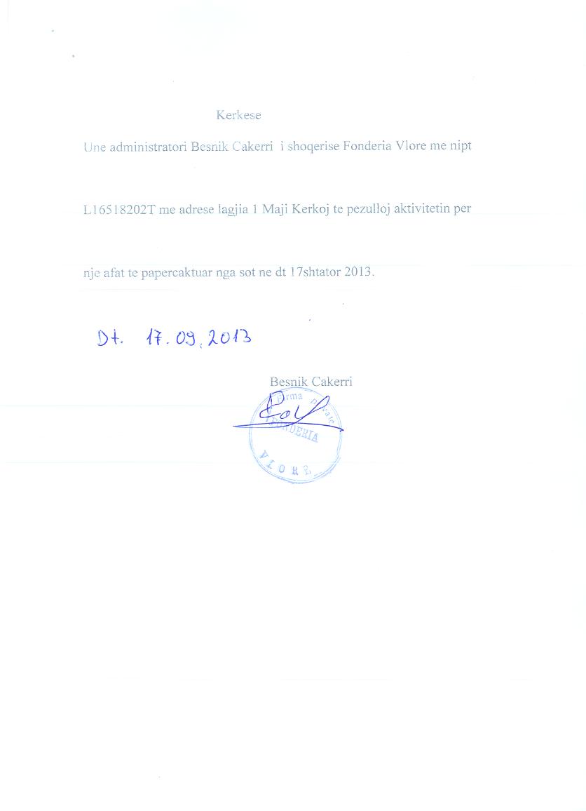 → Ekstrakt historik i regjistrit tregtar date 16.02.2022 → Akti i themelimit → Kerkesa e administratorit per pezullimin e aktivitetit date 17.09.2013 |