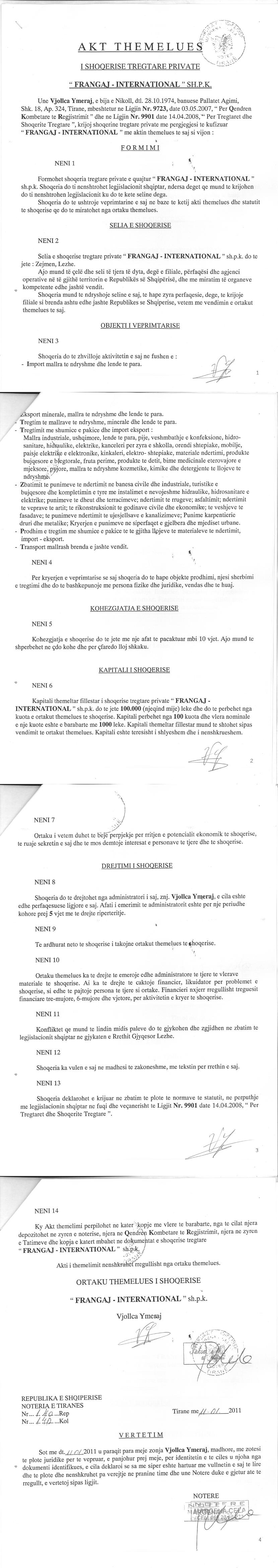 | Emërtime të tjera Tregtare: | FRANGAJ - INTERNATIONAL |