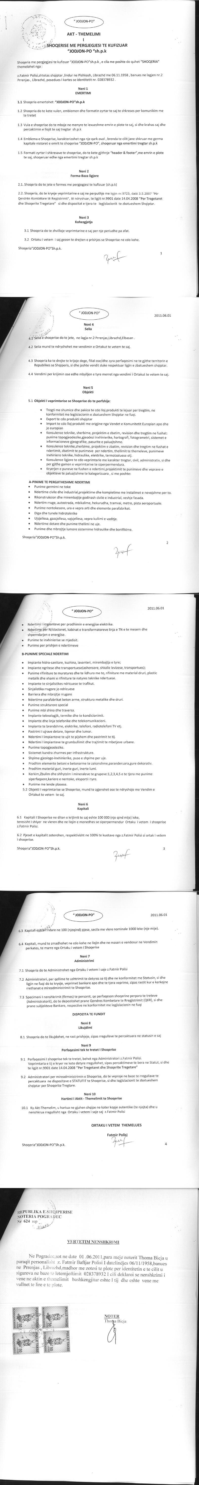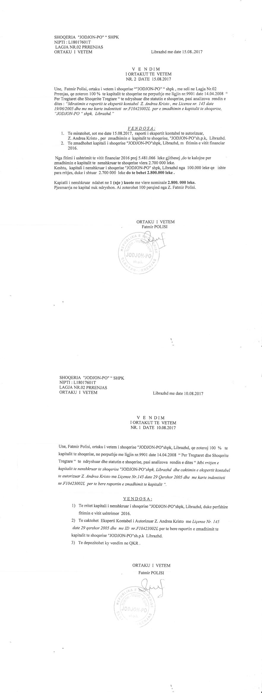 → Ekstrakt historik i regjistrit tregtar date 15.07.2021 → Vendim i ortakut te vetem per zmadhimin e kapitalit date 15.08.2017 → Akti i themelimit |