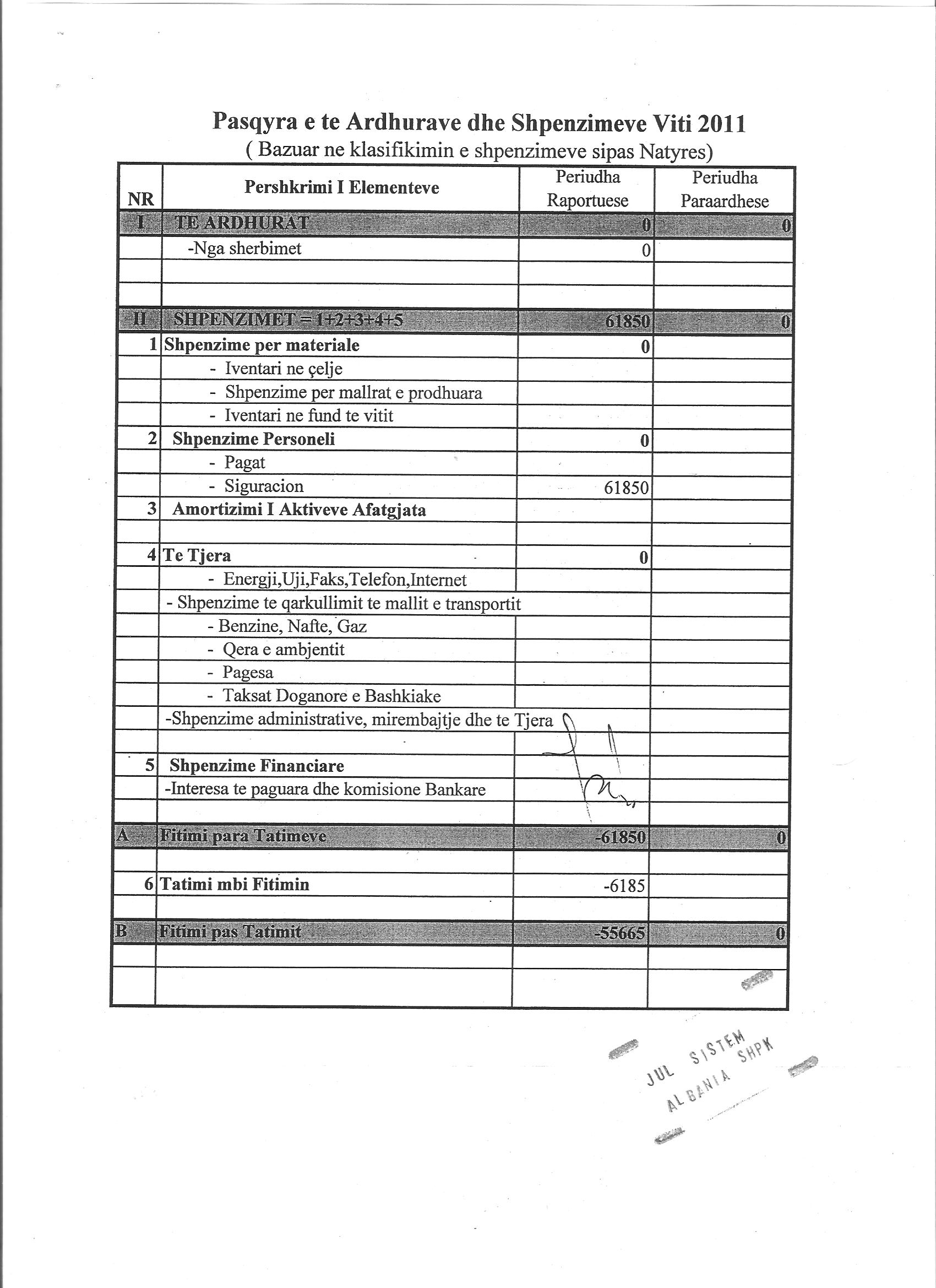 → Pasqyra e te ardhurave dhe shpenzimeve 2011 |