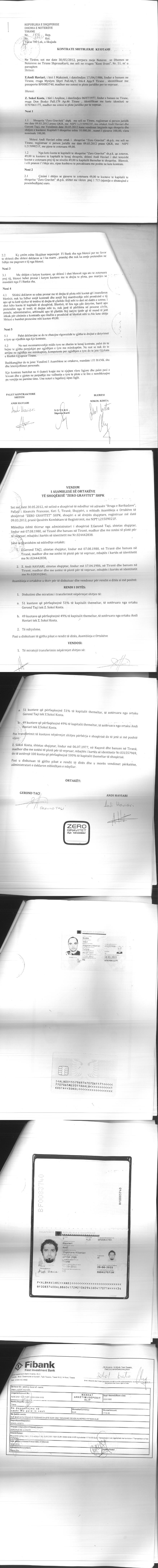 → Ekstrakt Historik i Regjistrit Tregtar date 20.09.2023 → Akt themelimi i Shoqerise → Kontratë Shtiblerje Kuotash datë 30.05.2012 (1) → Kontratë Shitblerje Kuotash datë 30.05.2012 (2) → Kontratë Shitblerje Kuotash datë 02.08.2013 → Vendim i Ortakut të Vetëm, Zmadhim Kapitali datë 05.10.2013 |