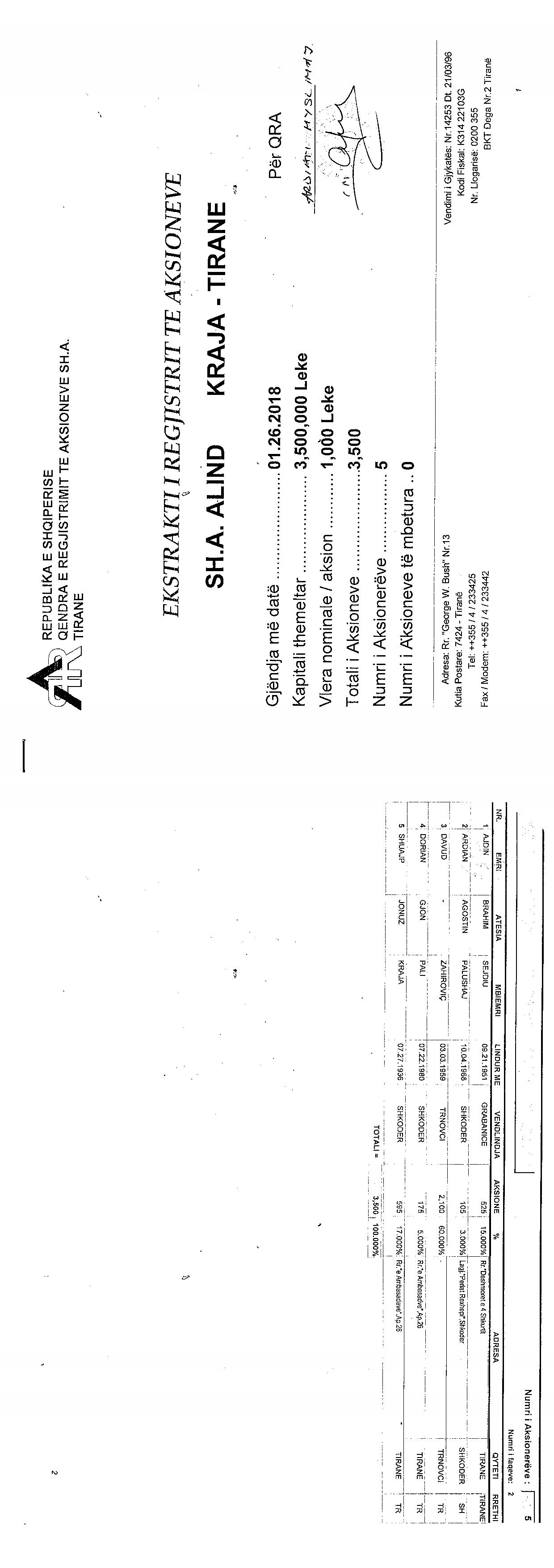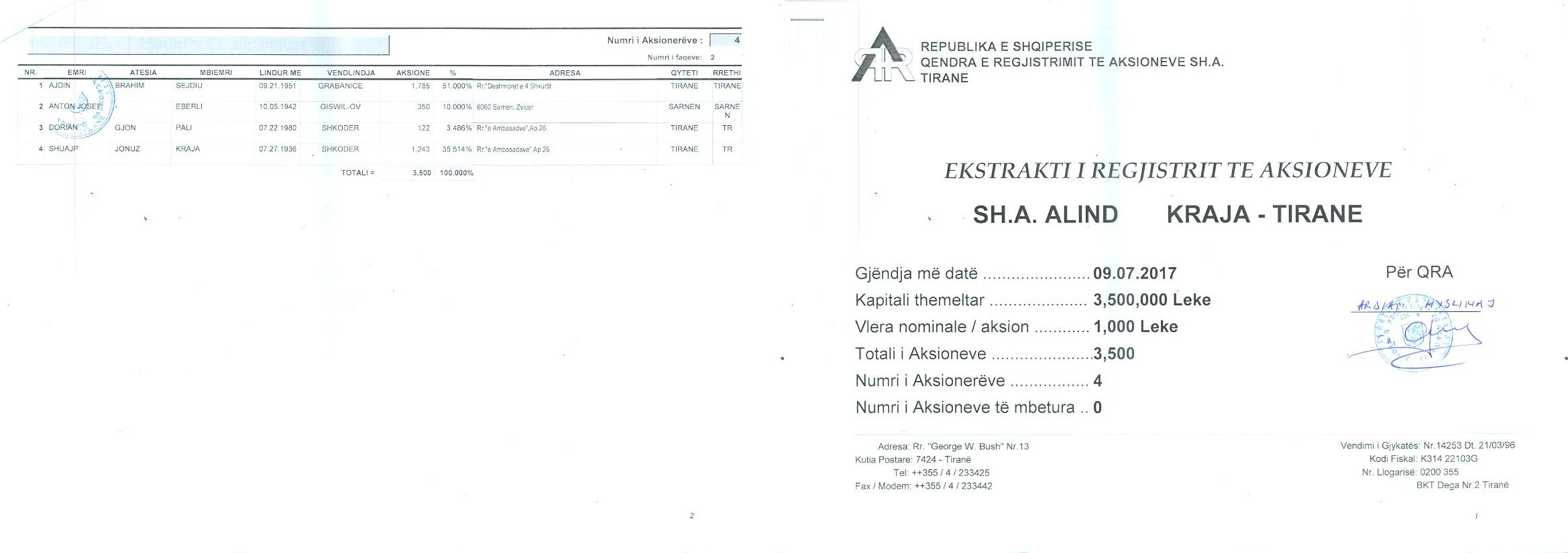 | Emërtime të tjera Tregtare: | ALIND & KRAJA |