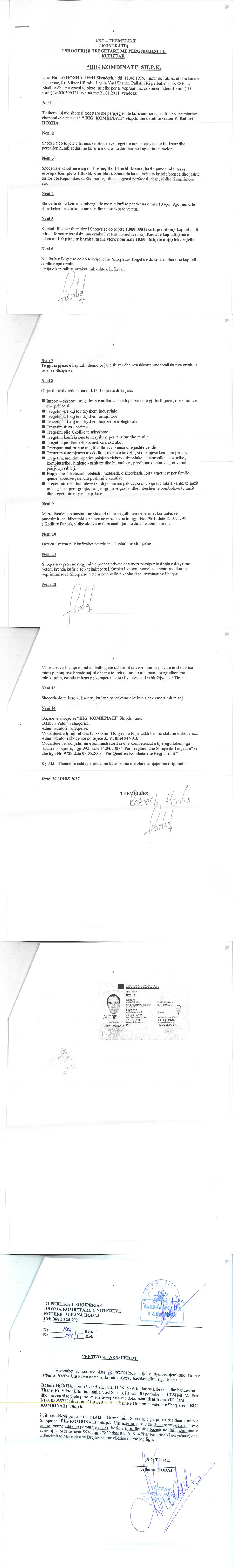 | Shënime: | Kompetencat e Administratorit: Administrori i shoqerise nuk ka te drejte dhe kompetence per te nenshkruar kontrata apo çdo lloj marreveshje qe ne nje menyre apo tjeter, ka lidhje me veprimtari fitimprurese qe buron nga pasuria e shtetit ose pushtetit vendor dhe as te fitojne pasuri te ketyre. |