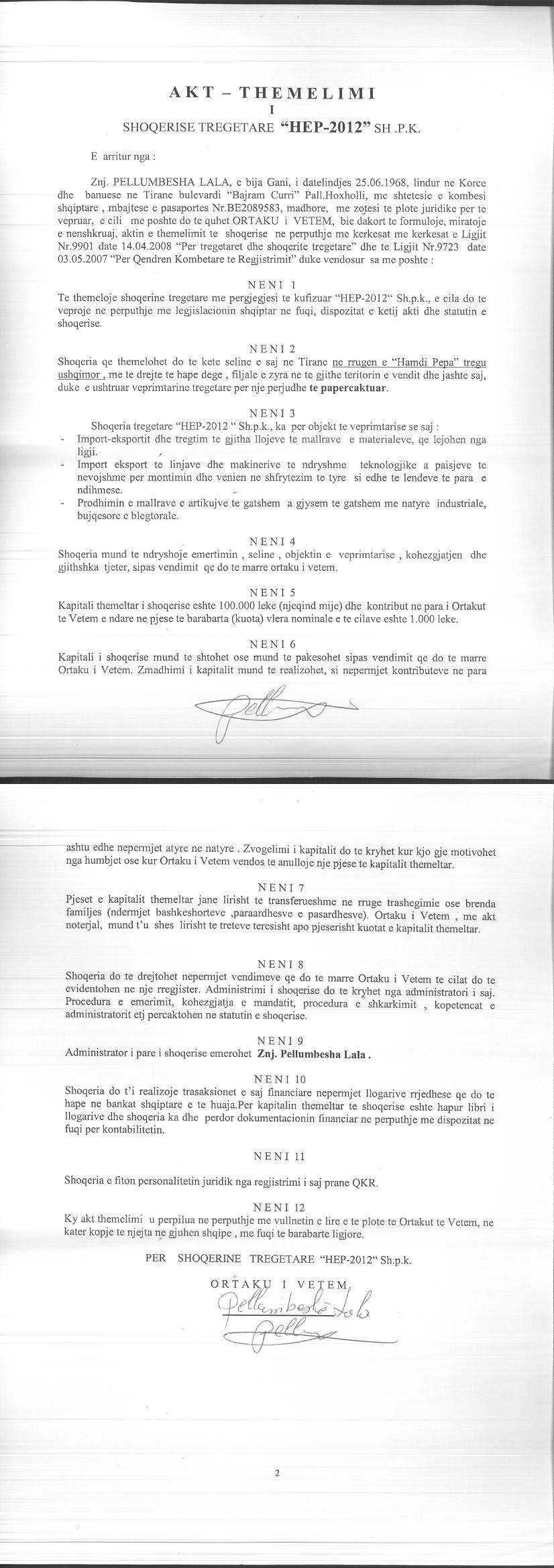 → Ekstrakti Historik i Regjistrit Tregtar date 08.10.2021 → Akti i themelimit |