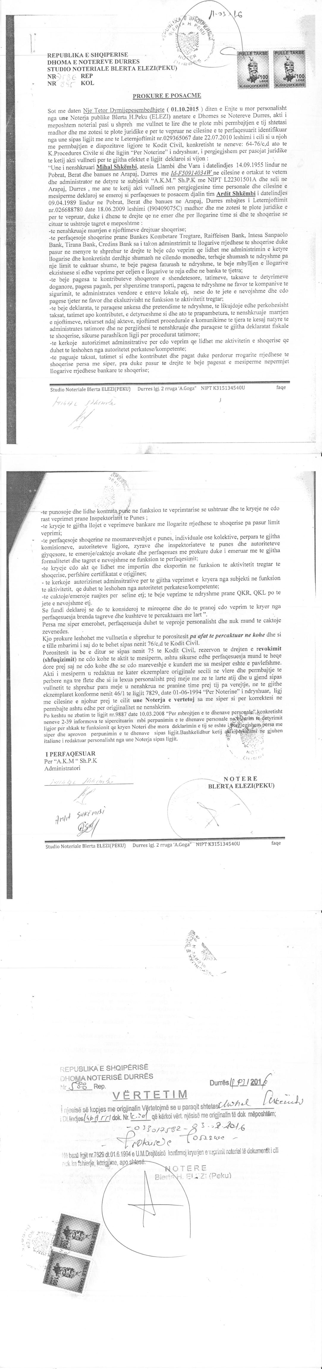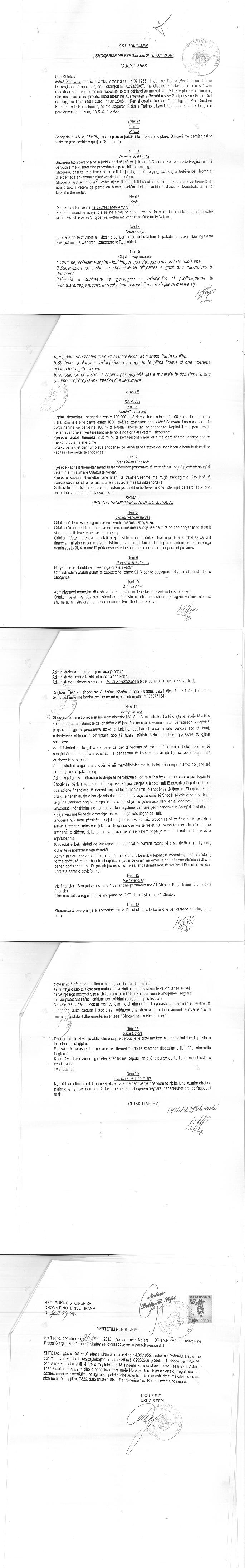 → Ekstrakt historik i regjistrit tregtar 01.06.2021 → Akti i themelimit → Prokure e posacme 01.10.2015 → Ekstrakt historik i regjistrit tregtar date 03.09.2025 → Kontrate shitblerje kuotash date 30.08.2022 |