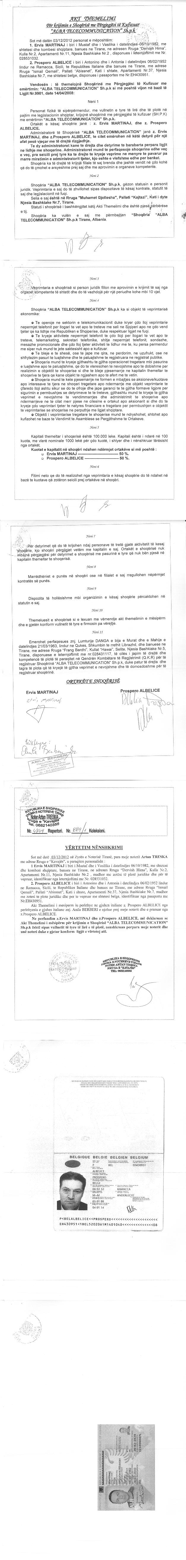 | Emërtime të tjera Tregtare: | ''ALBA TELECOMMUNICATION'' |
