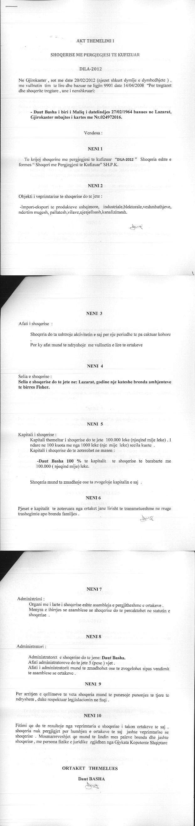 | Objekti i Veprimtarisë: | Import-eksport te produkteve ushqimore, industriale, blektorale, veshmbathjeve, ndertim rrugesh, pallatesh, vilave, ujesjellsash, kanalizimesh. |