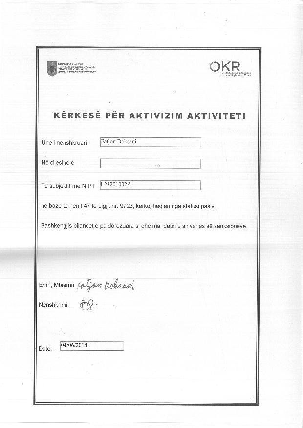 → Ekstrakt historik i regjistrit tregtar date 25.12.2021 → Kerkese per aktivizim aktiviteti date 25.12.2021 |