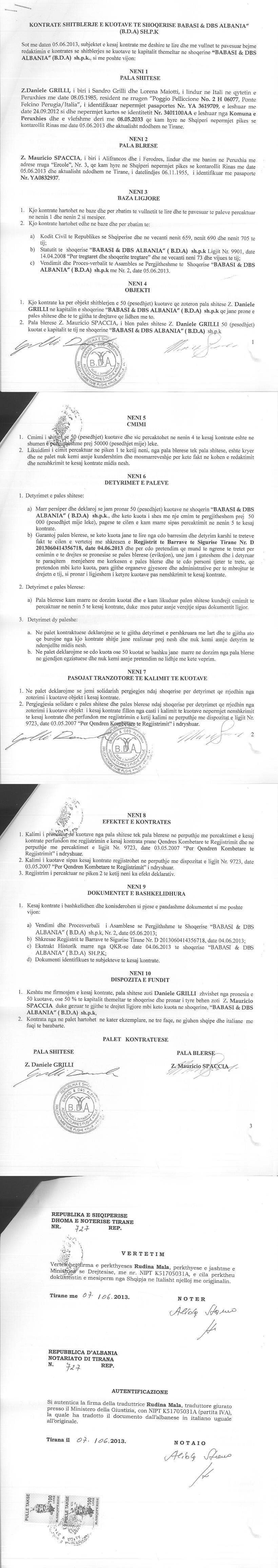 → Ekstrakt Historik i Regjistrit Tregtar date 30.04.2025 → Akt themelimi i Shoqerise → Ekstrakt Historik i Regjistrit te Pronareve Perfitues date 30.04.2025 → Kontratë Shitblerje Kuotash Kapitali datë 05.06.2013 |