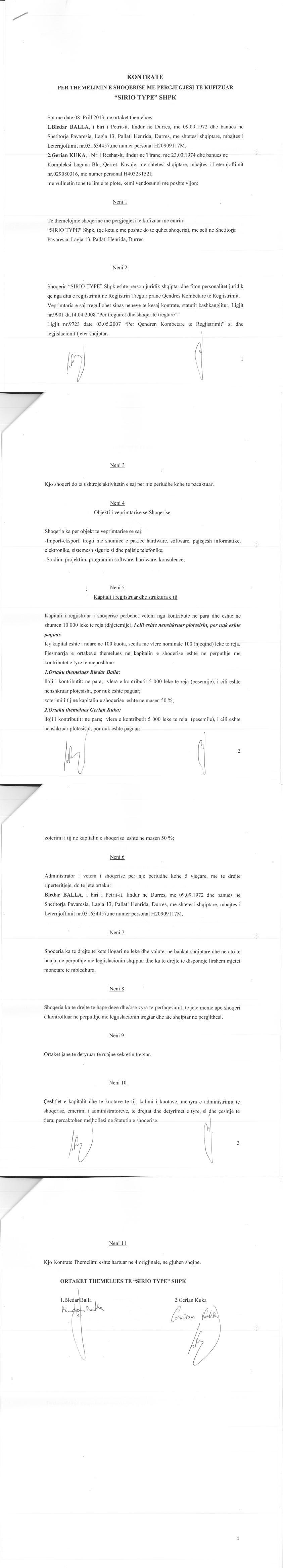 | Forma ligjore: | Shoqëri me Përgjegjësi të Kufizuar SH.P.K |