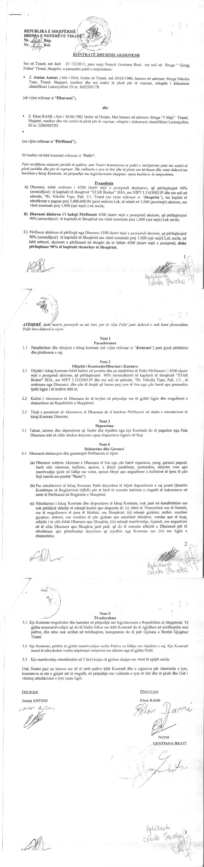 → Ekstrakti Historik i Regjistrit Tregtar date 26.05.2022 → Statuti i Shoqerise → Kontrate e Dhurimit te Kuotave date 23.12.2013 |