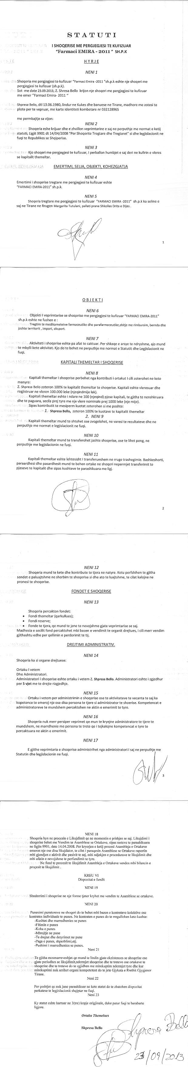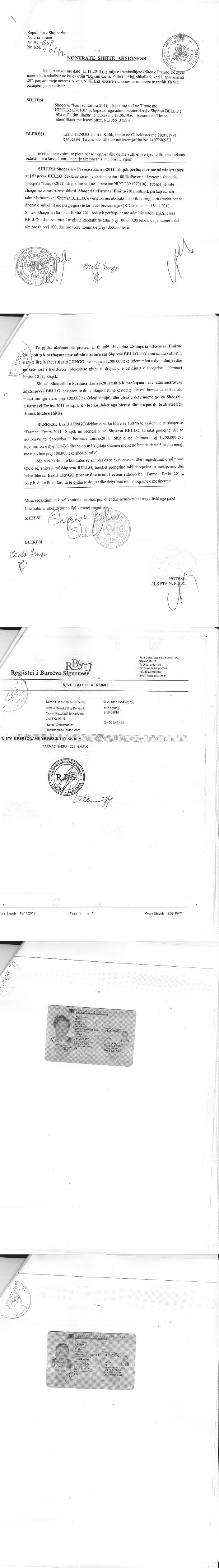 → Ekstrakti Historik i Regjistrit Tregtar date 09.11.2022 → Statuti i Shoqerise → Kontrate Shitje Kuotash date 15.11.2013 |