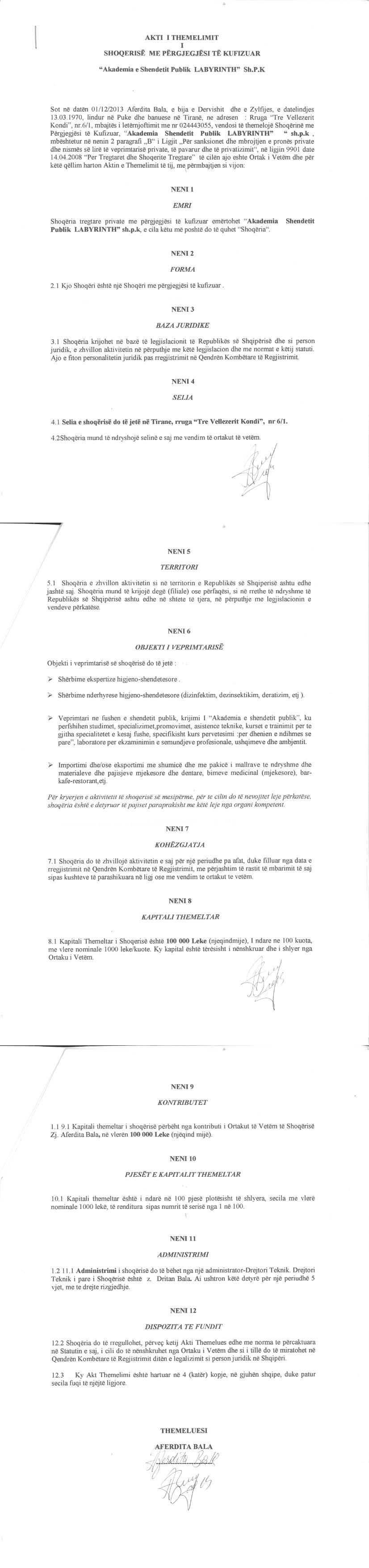→ Ekstrakt historik i regjistrit tregtar date 21.09.2021 → Akti i themelimit |