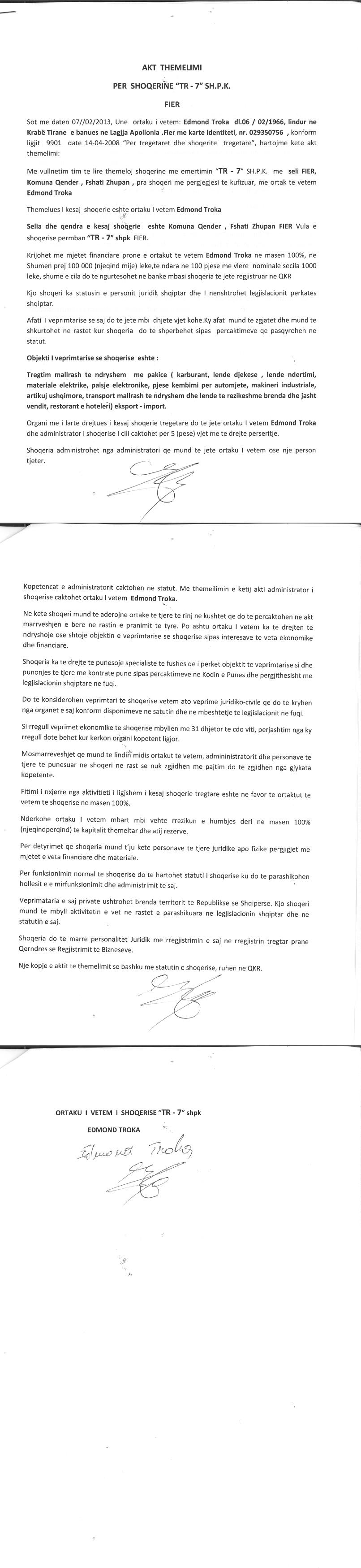 → Ekstrakt historik i regjistrit tregtar date 14.01.2022 → Akti i themelimit |