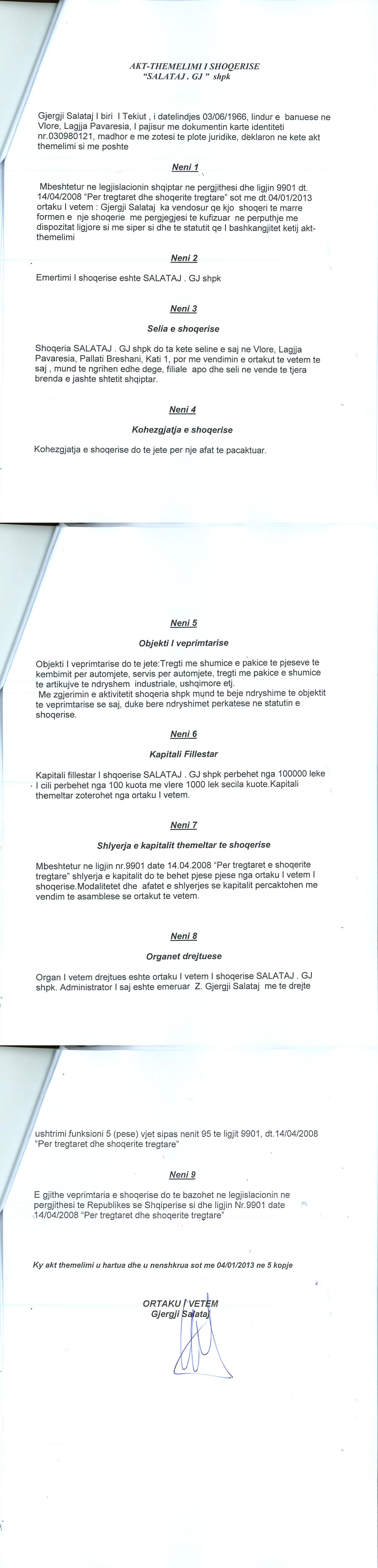 → Ekstrakti Historik i Regjistrit Tregtar date 08.06.2023 → Akt themelimi i Shoqerise |