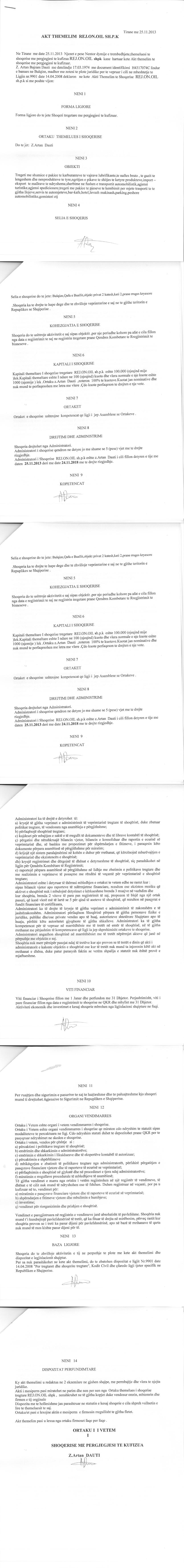 → Ekstrakt Historik i Regjistrit Tregtar, date 11.12.2021 → Akt themelimi, date 25.1.2013 → Statuti i shoqerise, date 25.11.2013 |