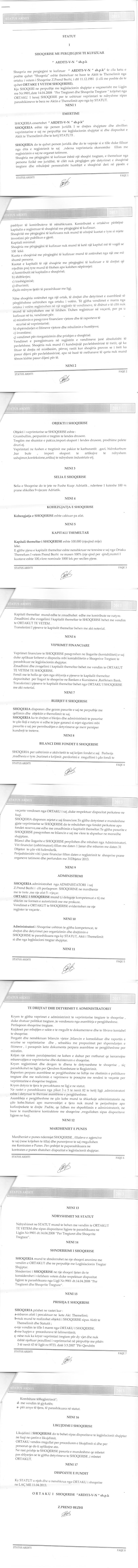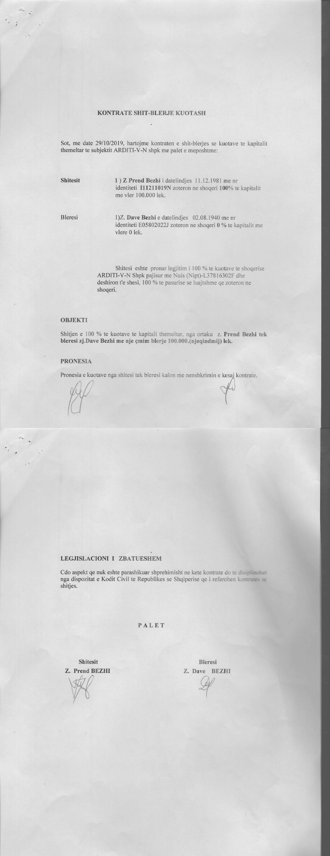 → Ekstrakti Historik i Regjistrit Tregtar date 04.11.2021 → Statuti i Shoqerise → Kontrate e Shit-Blerjes se Kuotave date 29.10.2019 |