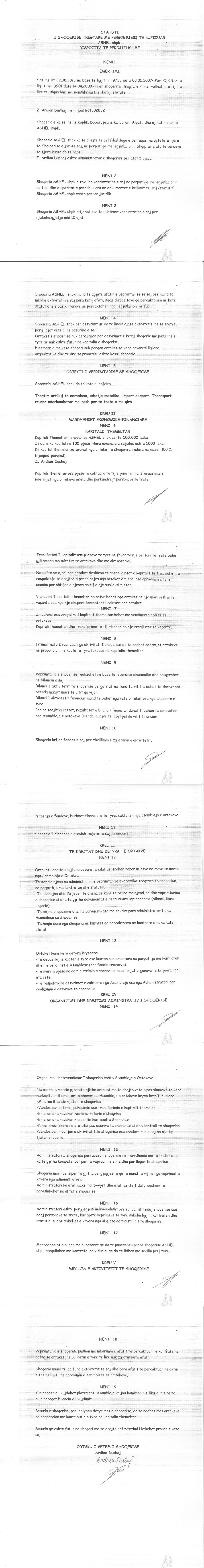 → Ekstrakt Historik i Regjistrit Tregtar date 10.04.2023 → Statuti i Shoqerise → Vendim i Ortakut të Vetëm, Zmadhim Kapitali datë 10.06.2017 → Vendim i Ortakut të Vetëm, Zvogëlim Kapitali datë 04.06.2019 → Vendim i Ortakut të Vetëm, Bashkimi me Përthithje datë 28.09.2020 → Projekt Marrëveshja e Bashkimit datë 28.09.2020 → Marrëveshje Bashkimi datë 25.11.2020 |