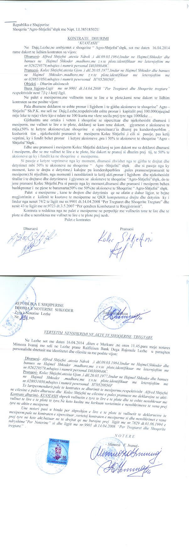 "AGRO - ALKO" SHPK (ish "AGRO - SHTJEFNI")