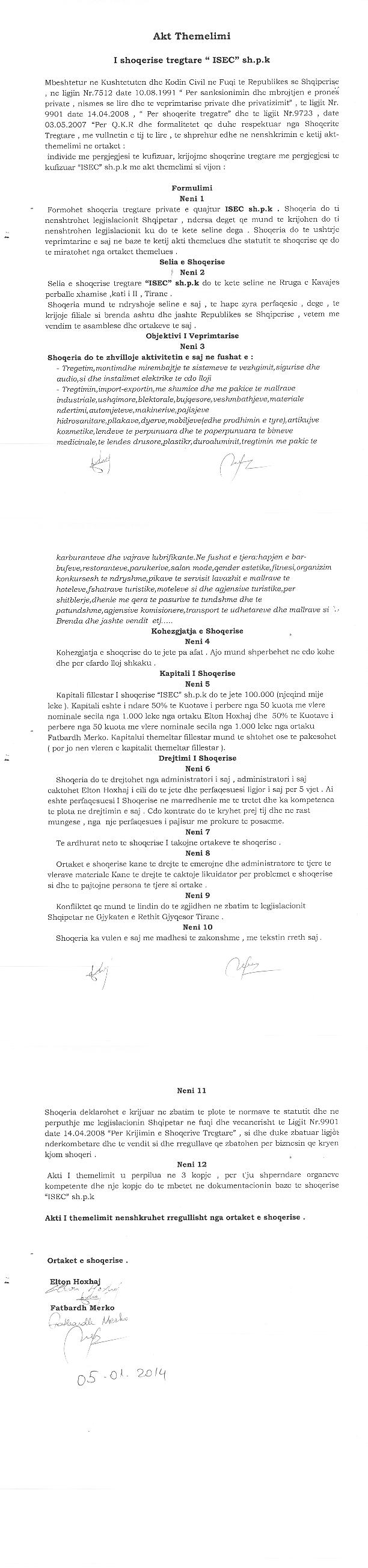 II.Me date 17.02.2021, eshte ndryshuar objekti i veprimtarisë se shoqërisë si me poshte: Tregetim,montim dhe mirembajtje te sistemeve te vezhgimit,sigurise dhe audio,si dhe instalimet elektrike te cdo lloji.Tregtimin,import-exportin,me shumice dhe me pakice te mallrave industriale,ushqimore,blektorale,bujqesore,veshmbathjeve,materiale ndertimi,automjeteve,makinerive,pajisjeve hidrosanitare,pllakave,dyerve,mobiljeve(edhe prodhimin e tyre),artikujve kozmetike,lendeve te perpunuara dhe te paperpunuara te bimeve medicinale,te lendes drusore,plastike,duroaluminit,tregtimin me pakice te karburanteve dhe vajrave lubrifikante.Ne fushat e tjera,hapjen e barbufeve,restoranteve,parukerive,salon mode,qender estetike,fitnesi,organizim konkursesh te ndryshme,pikave te servisit lavazhit e mallrave te hoteleve,fshatrave turistike, moteleve si dhe agjensive turistike,per shitblerje,dhenie me qera te pasurive te tundshme dhe te patundshme,agjensive komisionere,transport te udhetareve dhe mallrave si Brenda dhe jashte vendit etj. Trajnime ne fushen e informatikes. Shitjablerja e pajisjeve Tl si kompjutera, PC, servera, projektore, skaner, printera, fotokopje, fakse, etj. Krijimi i linjave per montimin e kompjuterave dhe studiove dixhitale. Tregtimi I pjeseve te kembimit per te gjitha ilojet e pajisjeve te tilla, sherbim mirembajtjeje. Programim, Implementim dhe mirembajtje e software-ve, Asistence dhe konsulence per pergatitjen e software-ve. Pergatitje faqe internet],reklamash, posterash, ftesash, kartvizitash.Shitja, blerja me shumice dhe pakice te artikujve te kancelarise, pajisje elektrike dhe elektronike shtepiake, etj. Shitja dhe blerja e sistemeve kompiuterike e informatike me qellim perdorimi dhe menaxhimi te sistemit banker. Realizimi i import-eksportit te te gjithe artikujve me siper. Tregtim te software-ve. Programim dhe zhvillim te aplikacioneve web-based. Instalime mirembajtje paisjesh si kaldaja, kondicionier, sistemet e ngrohjes, gjeneratore etj). Krijim dhoma serverash. Shitje dhe dhenie me qira, paisjesh monitorimi GPS dhe cdo aksesor te tyre. Sherbim monitorimi GPS dhe cdo sensori per matje furnizimi dhe shperndarjes se rrymes elektrike, ujit, naftes. Monitorim te konsumit te karburantit me gps, kolaudim dhe mbikeqyrje punimesh per sisteme kamera dhe GPS etj.Veprimtari ne fushen e zbatimit ne ndertim.