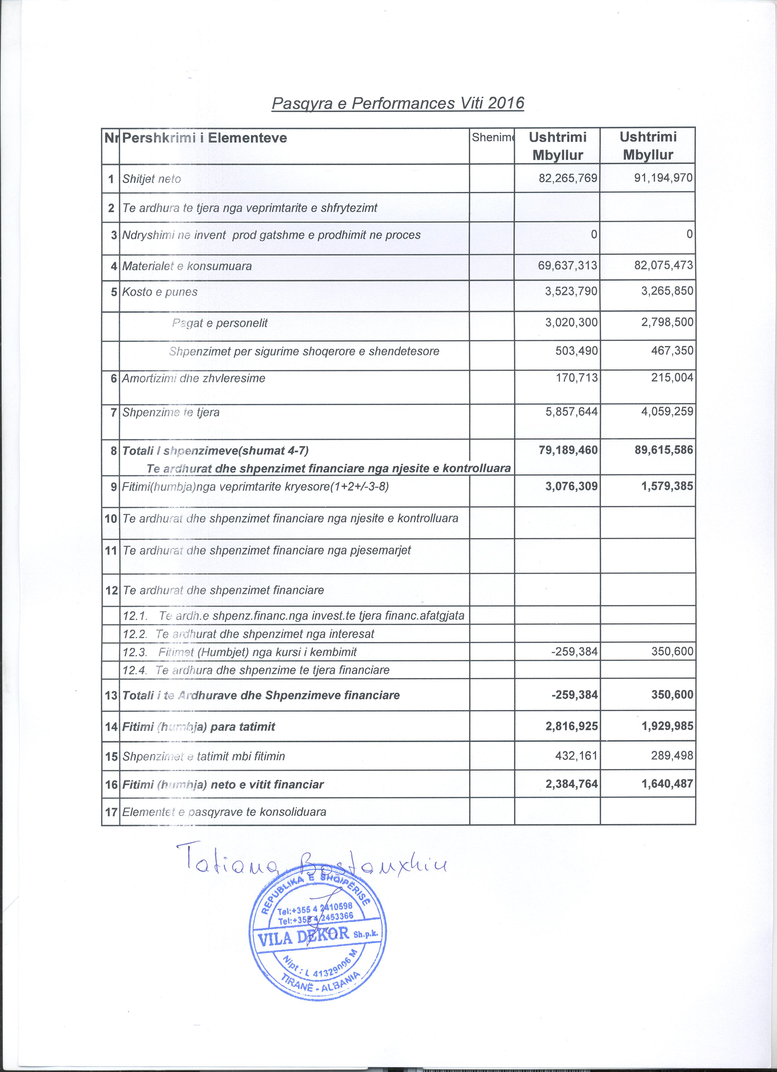 Xhiro Vjetore(Lekë) 2020:58 738 305,00 Xhiro Vjetore(Lekë) 2019:97 547 599,00 Xhiro Vjetore(Lekë) 2018:114 944 456,00 Xhiro Vjetore(Lekë) 2017:100 303 631,00 Xhiro Vjetore(Lekë) 2016:82 265 769,00 Xhiro Vjetore(Lekë) 2015:91 194 970,00 Xhiro Vjetore(Lekë) 2014: 96 459 807,00 |