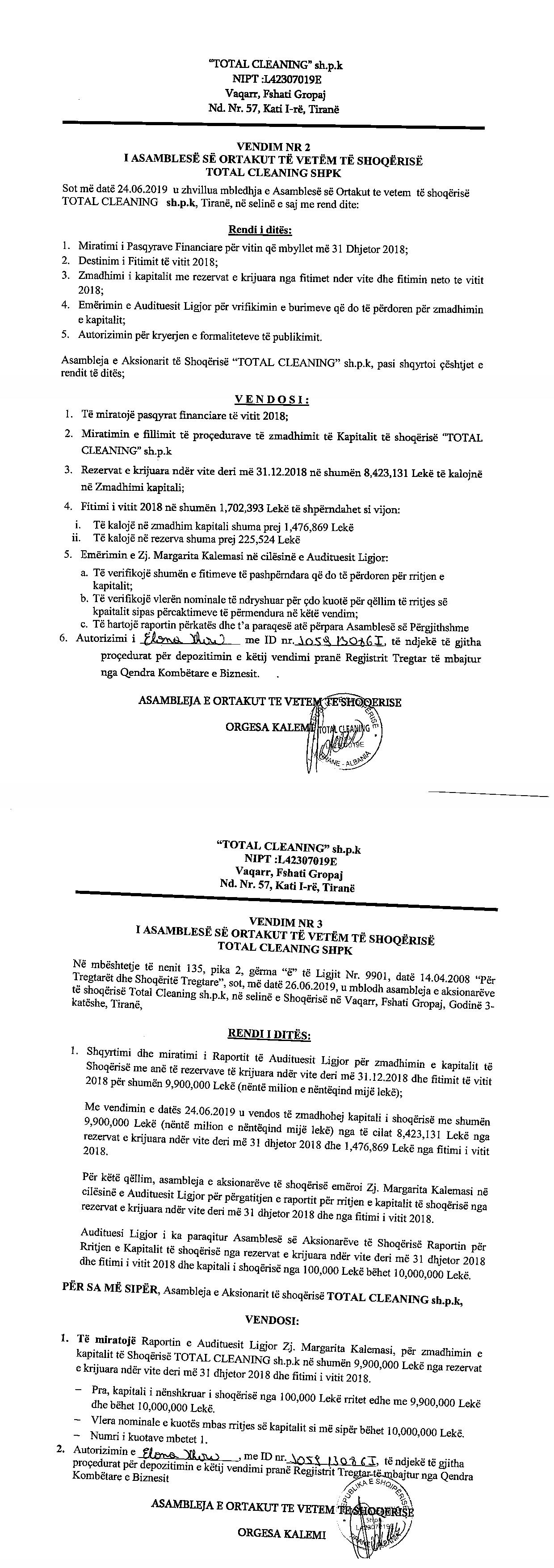 → Ekstrakt historik i regjistrit tregtar date 07.01.2022 → Statuti i shoqerise → Vendimi i ortakut te vetem per zmadhimin e kapitalit date 24.06.2019 |