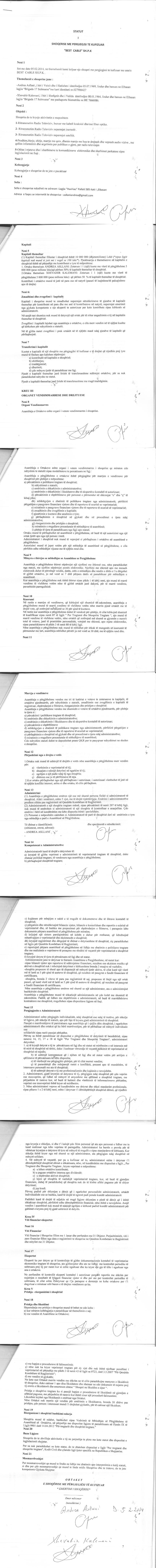 | Objekti i Veprimtarisë: | Ritransmetim radio televiziv, bazuar ne kabell koaksial dhe/ose fiber optike.Ritransmetim radio televiziv nepermjet internetit.Ritransmetim radio televiziv nepermjet satelitit.Prodhim, blerje, shitje, marrje me qera, dheniemarrje me hua te drejtash dhe veprash audiovizive, me qellim informim dhe argetim per publikun e gjere, per radiotelevizion.Ofrim i rrjeteve dhe sherbime te komunikimeve elektronike dhe sherbimet perkatese, sipas legjjislacionit ne fuqi. |