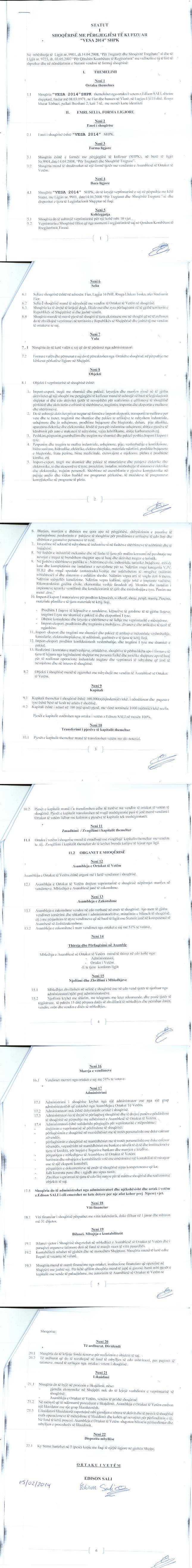 → Ekstrakt historik i regjistrit tregtar date 09.09.2021 → Statuti i Shoqerise → Ekstrakti Historik i Regjistrit Tregtar date 03.05.2023 |