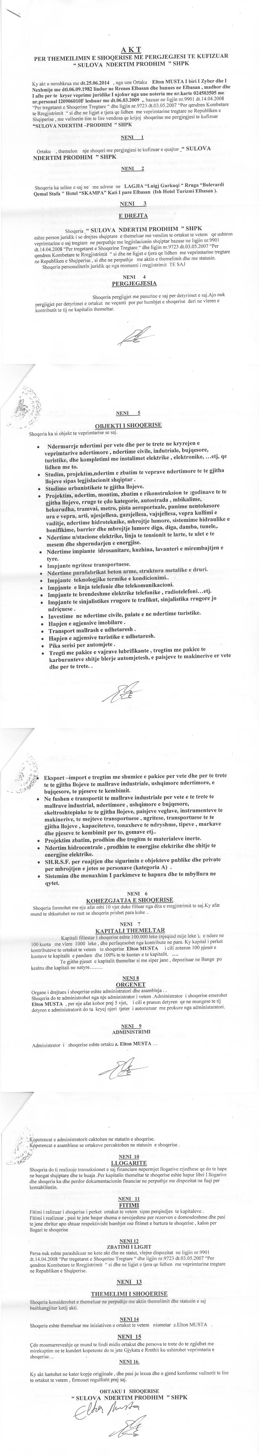 | Emërtime të tjera Tregtare: | SULOVA NDERTIM PRODHIM |
