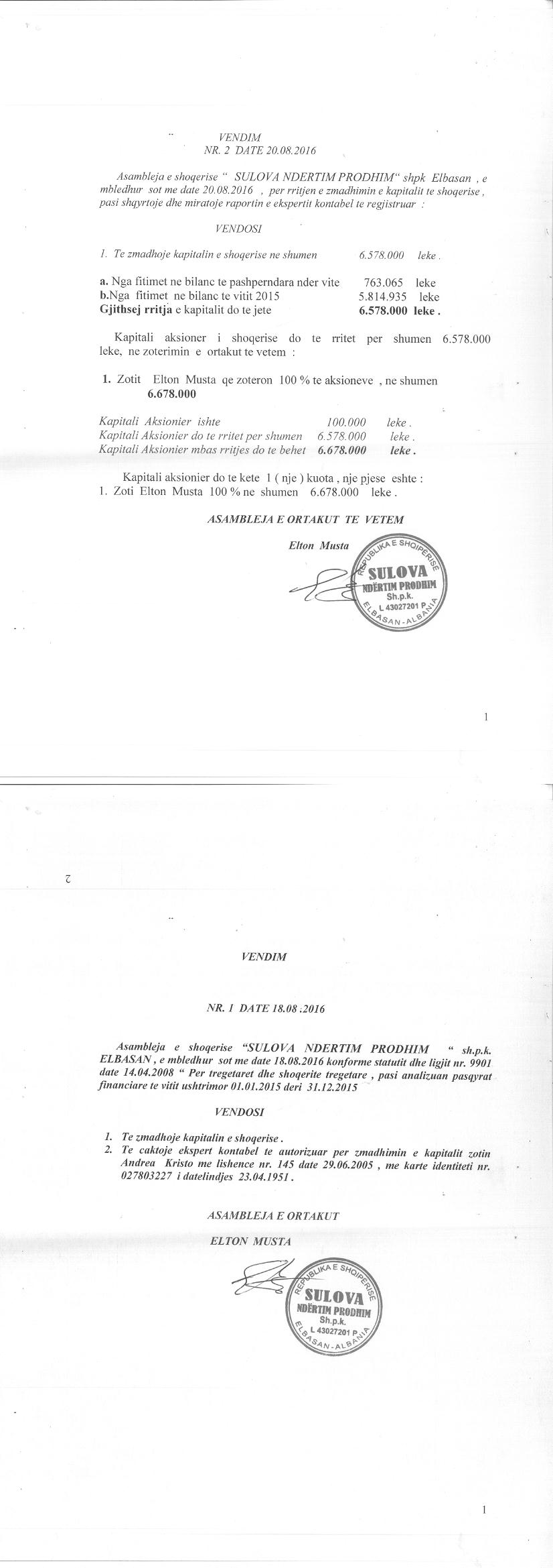 → Ekstrakt historik i regjistrit tregtar 10.05.2021 → Akti i themelimit → Kontrate shitje kuotash kapitali 13.10.2020 → Vendim i asamblese se ortakeve per zmadhimin e kapitalit 20.08.2016 |